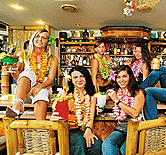 Ein freundliches, hilfsbereites, kleines Wichtelmännchen ist das Maskottchen der Menehune Bar. Es symbolisiert die typisch asiatische Gastfreundschaft, die dem Besucher hier durchweg geboten wird. Gleich beim Betreten bezaubert die polynesische Cocktailbar über zwei Etagen durch ihre hübsche Bambus- und Palmendeko. Das Cocktailangebot mit über 120 zum Teil sehr exotischen Drinks ist ebenso verführerisch wie die hier sehr zu empfehlende kulinarische Welt des Südpazifiks. |